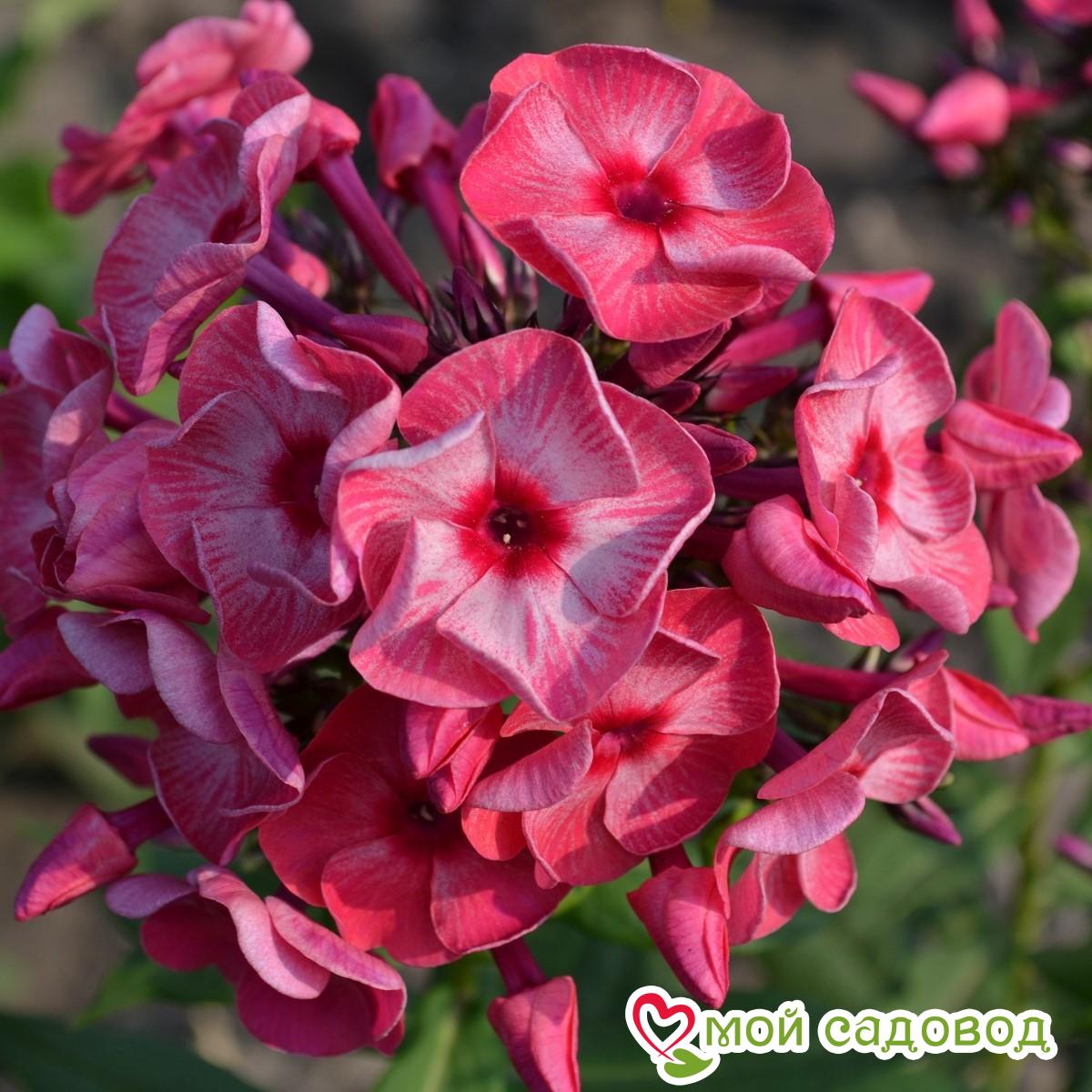 Цветы имеют необычный окрас с нежными бело-розовыми мазками. Диаметр цветка до 4 см. Высота флокса – 45-55 см. Цветение июль-август. Как выглядит растение? Куст прямостоячий, густо облиственный, высотой до 55 см. Растение способно стремительно разрастаться. Побеги прочные, но под весом раскрывающихся соцветий слегка поникают. Цветение начинается в конце июля — первой половине августа. Окраска бутонов необычная – пурпурно-коричневая. Распустившиеся цветки белоснежные, а трубка розового цвета. Вместе они образуют крупное соцветие пирамидальной формы. Диаметр цветка составляет 4 см. Аромат нежный и приятный. Применение в ландшафтном дизайне Сорт выращивают на втором плане клумб и миксбордеров. Многолетник хорошо сочетается с лилиями, лилейниками и древовидными пионами с темной окраской лепестков. Флористы добавляют цветок в букетные композиции. Советы по посадке и выращиванию Для растения подходит как солнечно, так и слега затененное место. Жизнь хрупких цветков можно продлить, если обеспечить им защиту от резких порывов ветра. Декоративные качества многолетника раскрываются лучшим образом в плодородной, рыхлой и умеренно влажной земле. При посадке важно, чтобы почки находились на 2 см ниже уровня поверхности грунта. Лунки готовят размером 30 х 30 см. Внутрь насыпают компост, торф и песок. В слишком легкую почву добавляют глину – она поможет удерживать влагу. Корни саженца расправляют и засыпают почвосмесью. Купить недорого флоксы можно в интернет-магазине «Мой садовод». Просто отправьте понравившийся сорт в корзину, нажав на соответствующую кнопку. Мы бережно упакуем и максимально быстро доставим Вашу покупку ТК СДЭК или почтой России. Если возникнут вопросы или сложности с оформлением заказа, наши консультанты предоставят квалифицированную помощь. Мы гарантируем высокое качество посадочного материала и дорожим мнением каждого покупателя!